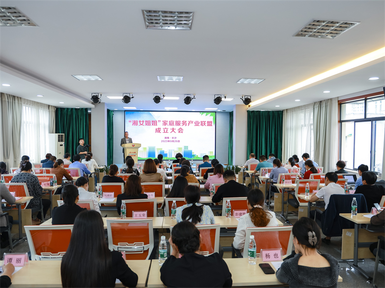 9月29日“湘女姐姐”家庭服務(wù)產(chǎn)業(yè)聯(lián)盟成立大會(huì)在長沙舉行,現(xiàn)場領(lǐng)導(dǎo)嘉賓共同按下啟動(dòng)鍵,宣布“湘女姐姐”家庭服務(wù)產(chǎn)業(yè)聯(lián)盟正式啟航。