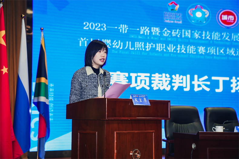最后,金磚國(guó)家技能發(fā)展與技術(shù)創(chuàng)新大賽組委執(zhí)委會(huì)副主席何勇宣布2023一帶一路暨金磚國(guó)家技能發(fā)展與技術(shù)創(chuàng)新大賽首屆嬰幼兒照護(hù)職業(yè)技能賽項(xiàng)區(qū)域選拔賽(第十場(chǎng))正式開賽。
