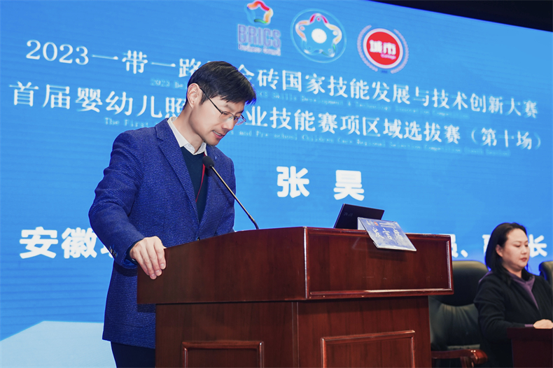 11月12日,2023一帶一路暨金磚國家技能發(fā)展與技術(shù)創(chuàng)新大賽首屆嬰幼兒照護職業(yè)技能賽項區(qū)域選拔賽(第十場)在安徽城市管理職業(yè)學院圓滿閉賽,安徽城市管理職業(yè)學院黨委委員、副校長張昊,學前教育學院副院長王珊珊,賽項專家組長張曉鶴處長,賽項裁判長丁揚,金職偉業(yè)集團有限公司職教研究中心主任陳妙齡等領(lǐng)導出席閉賽式。