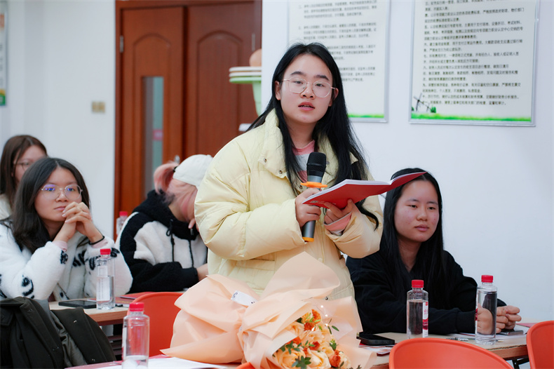 座談交流環(huán)節(jié),金職偉業(yè)在職人員——湖南女子學(xué)院往屆學(xué)姐結(jié)合自身經(jīng)歷向即將畢業(yè)的學(xué)妹們分享了幾點(diǎn)建議,期待她們在不斷探索新事物的過程中明確職業(yè)發(fā)展方向,做好未來職業(yè)規(guī)劃。在座學(xué)生就金職偉業(yè)運(yùn)營發(fā)展壯大的內(nèi)在邏輯向周丹請教,周丹熱情回應(yīng),為學(xué)生答疑解惑。
