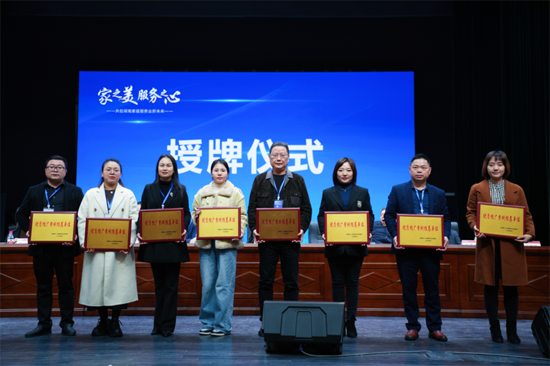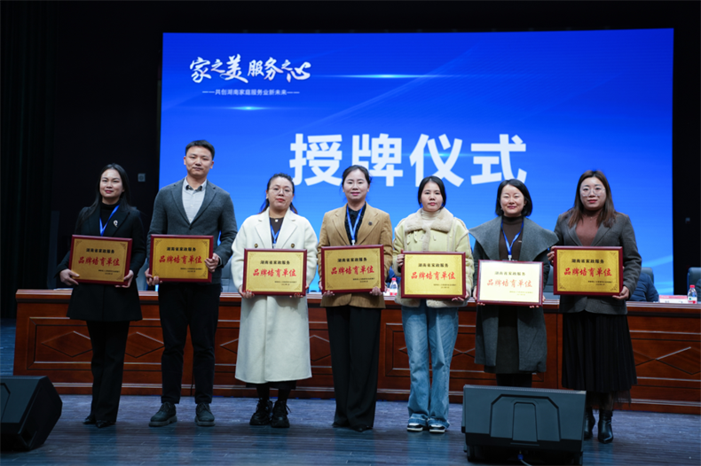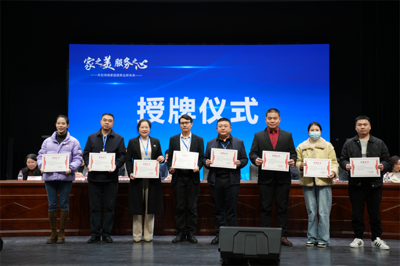 大會集中授予了多項榮譽。金職偉業被湖南省人力資源和社會保障廳現場授予“湖南省家政服務品牌建設省級臺賬品牌”牌匾,及“湖南省家庭服務職業培訓基地”榮譽稱號;此外,大會還現場頒發了湖南省“湘融湘愛 三湘郵情”杯家政服務業技能大賽系列獎項,其中,金職偉業王琳、李金燦分別獲得家政培訓賽項第二名、第五名,肖能獲評保育員賽項第五名。同時,在大賽家政服務“三優”案例評選中,金職偉業王琳參選的家政培訓服務案例獲選為優質推廣案例,李金燦參選的家政培訓服務案例、肖能參選的保育師服務案例獲選為優質潛質案例。