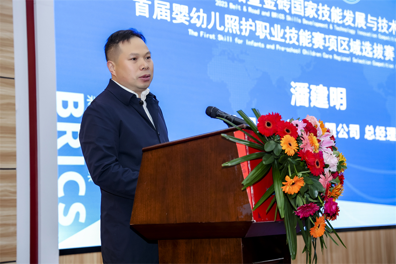 金職偉業總經理潘建明對賽事的成功舉辦及在競賽中取得優異成績的選手表示熱烈的祝賀。他表示,此次區域選拔賽是一次精彩、圓滿的競技盛會,是對醫藥衛生大類和教育與體育大類嬰幼兒照護相關專業學生專業技能的一次大檢閱,是職業院校師生交流經驗、切磋技藝、發現人才的一個優質平臺。“金職偉業作為大賽承辦單位,將攜手院校,全力推進賽事成果轉化工作,將大賽項目、評價標準、賽項內容融入專業人才培養,全力推動‘崗課賽證’融通,帶動專業建設、師資隊伍建設,賦能技能人才培養工作提質。”