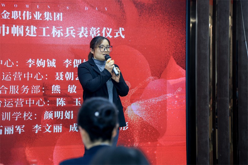 為表彰先進(jìn),激勵(lì)金職偉業(yè)女性員工不斷進(jìn)步,活動(dòng)現(xiàn)場(chǎng)還舉行了金職偉業(yè)集團(tuán)2023年度巾幗建功標(biāo)兵表彰儀式。李?yuàn)愪叺?0名女性員工獲得金職偉業(yè)“2023年度巾幗建功標(biāo)兵”稱號(hào)。