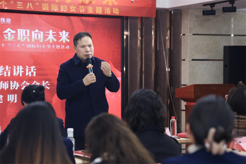 3月7日,在湖南省婦女兒童發(fā)展基金會(huì)、雨花區(qū)總工會(huì)、湖南省育嬰師協(xié)會(huì)引領(lǐng)下,金職偉業(yè)集團(tuán)特組織開展以“巾幗建新功 金職向未來(lái)”為主題的三八國(guó)際婦女節(jié)紀(jì)念活動(dòng)。全國(guó)三八紅旗手、全國(guó)巾幗建功標(biāo)兵、金職偉業(yè)集團(tuán)董事長(zhǎng)彭英,湖南省育嬰師協(xié)會(huì)會(huì)長(zhǎng)、金職偉業(yè)集團(tuán)總經(jīng)理潘建明出席活動(dòng)并發(fā)表講話,金職偉業(yè)集團(tuán)有限公司產(chǎn)業(yè)學(xué)院院長(zhǎng)劉瀟,長(zhǎng)沙民政職業(yè)技術(shù)學(xué)院家政服務(wù)與管理專業(yè)主任趙艷,金職偉業(yè)全體女性員工及在讀學(xué)員、客戶代表參加活動(dòng)。