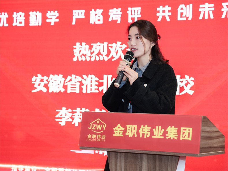 典禮伊始,金職偉業董事長彭英致歡迎詞,她對各位專家老師長久以來的支持、鼓勵表示感謝。她談到,“金職偉業扎根職業教育領域,在深化產教融合,推動‘教育鏈、人才鏈’與‘產業鏈、創新鏈’無縫銜接上做出了諸多努力與成果。后續,我們期待同各職業院校在產教融合、人才培養、師資隊伍建設上攜手共進,努力實現校企互補互融、共生共長,為職業教育的提質培優、增值賦能。”