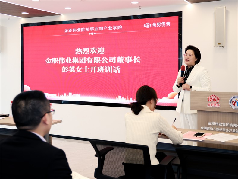為幫助產業學院新員工更好地了解職業教育賽道,探索產教融合,強化產業學院人才隊伍支撐,增強新員工服務院校能力。4月9日,金職偉業集團有限公司(以下簡稱“金職偉業”)院校事業部產業學院新員工入職培訓啟動。金職偉業集團有限公司董事長彭英、院校事業部總監周該生、院校事業部副總監易斌、產業學院副院長黃鐵牛等出席典禮。