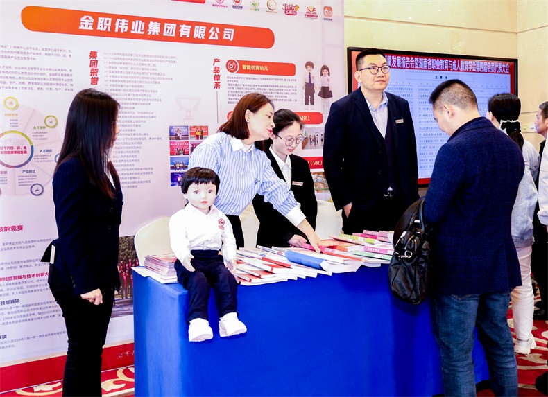 會議期間,金職偉業(yè)產(chǎn)品展臺吸引了多位行業(yè)大咖、領(lǐng)域?qū)<壹邦I(lǐng)導老師參觀指導,在共同探討職業(yè)教育高質(zhì)量發(fā)展的同時,就金職偉業(yè)智能仿真幼兒、嬰幼兒照護混合現(xiàn)實訓練系統(tǒng)(MR)、嬰幼兒照護職業(yè)技能虛擬仿真實訓系統(tǒng)(VR)等產(chǎn)品及書證融通系列教材進行深入的溝通與交流。