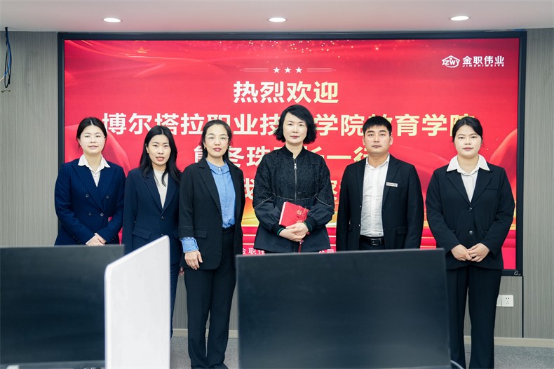為進一步深化產教融合、校企合作,充分發揮校企雙方的優勢,為學生提供更廣闊的專業發展空間,助推校企人才培養。4月11日,博爾塔拉職業技術學院教育學院與金職偉業舉行教育學院實習實訓基地授牌儀式。博爾塔拉職業技術學院教育學院院長熊冬珠、金職偉業院校事業部總監周該生等相關人員出席簽約及授牌儀式。