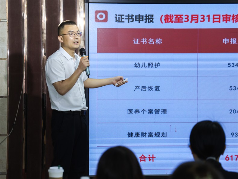 會議伊始,董事長彭英率先致辭。她表示,金職偉業正處于提質增速的關鍵時期,新員工的加入為集團的發展注入了生機和活力,期待日趨強大的金職團隊在金職偉業平臺的支持下飛速成長。隨后,她對各部門的工作完成情況給予了肯定,并明確了4月工作目標及工作重點。金職偉業在政策東風的吹拂下,以平臺、人才、“崗課賽證”、運營模式為抓手,形成了金職偉業在發展新質生產力背景下的核心競爭力。為激勵金職人攜手奮進,趕赴新一程山海,董事長還分享了自身的工作感悟:實干興司,在研究政策、創建新產品、團隊培養中堅定地以實干促發展;構建目標共同體、利益共同體、成長共同體、發展共同體;樹立安全意識,認識到安全就是發展,安全就是效益;學會“借力發展”,做好與政策改革、行業發展的對接,在創新方面闖出一條新路來。