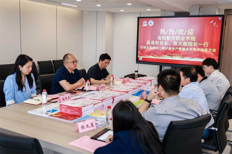 隨后,吳澤宗介紹了信陽航空職業(yè)學(xué)院辦學(xué)歷史、學(xué)科建設(shè)、師資隊(duì)伍、辦學(xué)成果及發(fā)展規(guī)劃,并就雙方可合作方向作簡(jiǎn)要分析。他希望與金職偉業(yè)以嬰幼兒托育服務(wù)與管理專業(yè)、智慧養(yǎng)老專業(yè)為試點(diǎn),探索產(chǎn)業(yè)學(xué)院發(fā)展模式,并逐步拓展到學(xué)前教育專業(yè)的合作。他還表示,學(xué)校推行“育人+產(chǎn)業(yè)”校企合作、產(chǎn)教融合模式,希望雙方圍繞育人目標(biāo),采用教學(xué)交付模式,在“五金”建設(shè)、賽事合作、教學(xué)成果獎(jiǎng)申報(bào)等方面合作共建產(chǎn)業(yè)學(xué)院;依托金職偉業(yè)智慧職教產(chǎn)品、社會(huì)服務(wù)能力、技能培訓(xùn)等企業(yè)優(yōu)勢(shì)資源,建立生產(chǎn)性實(shí)踐基地,把專業(yè)建在產(chǎn)業(yè)鏈上,滿足教師托育、學(xué)生就業(yè)實(shí)習(xí)需求。