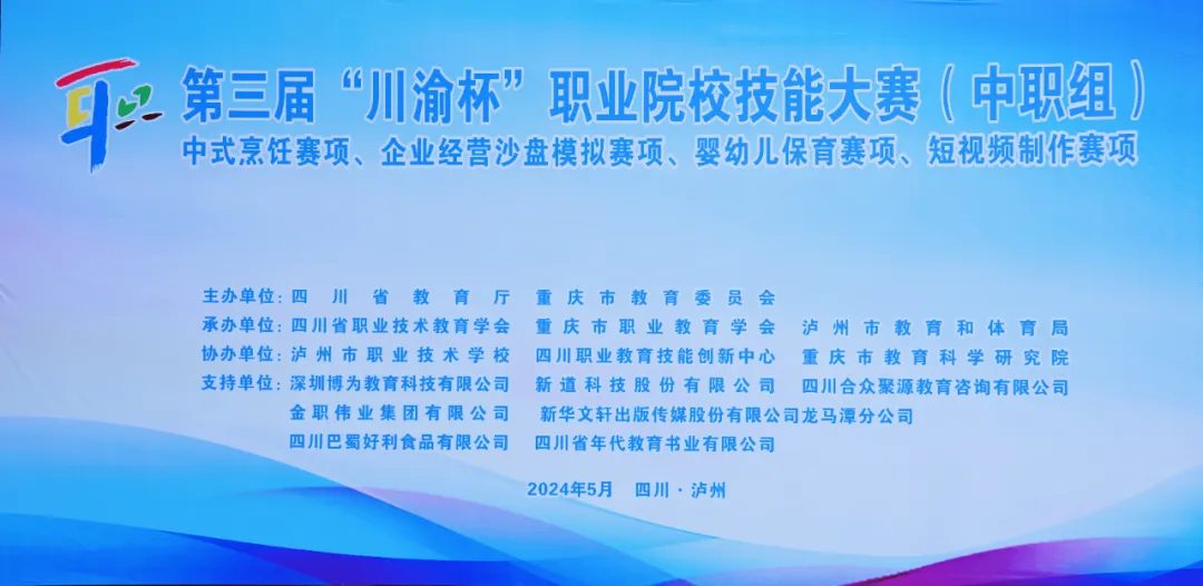 為貫徹落實《國家職業教育改革實施方案》精神,發揮大賽對職業教育的“樹旗、導航、定標、催化”作用,提高幼兒保育專業的辦學水平,助推保育員專業化發展。5月16日-17日,由四川省教育廳、重慶市教育委員會主辦,四川省職業技術教育學會、重慶市職業教育學會、瀘州市教育和體育局承辦,瀘州市職業技術學校、四川職業教育技能創新中心、重慶市教育科學研究所協辦,金職偉業集團有限公司(以下簡稱金職偉業)提供技術支持的2024年第三屆“川渝杯”嬰幼兒保育技能大賽(中職組)在瀘州市職業技術學校開賽,本次賽事共10支隊伍20位選手參賽。