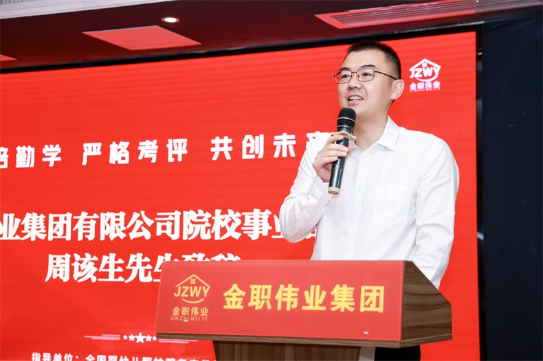 6月26日,2024年第三期1+X幼兒照護職業(yè)技能等級證書考評員到期復(fù)審換證培訓(xùn)班在長沙舉行開班典禮,金職偉業(yè)集團有限公司總經(jīng)理助理、院校事業(yè)部總監(jiān)周該生出席儀式。