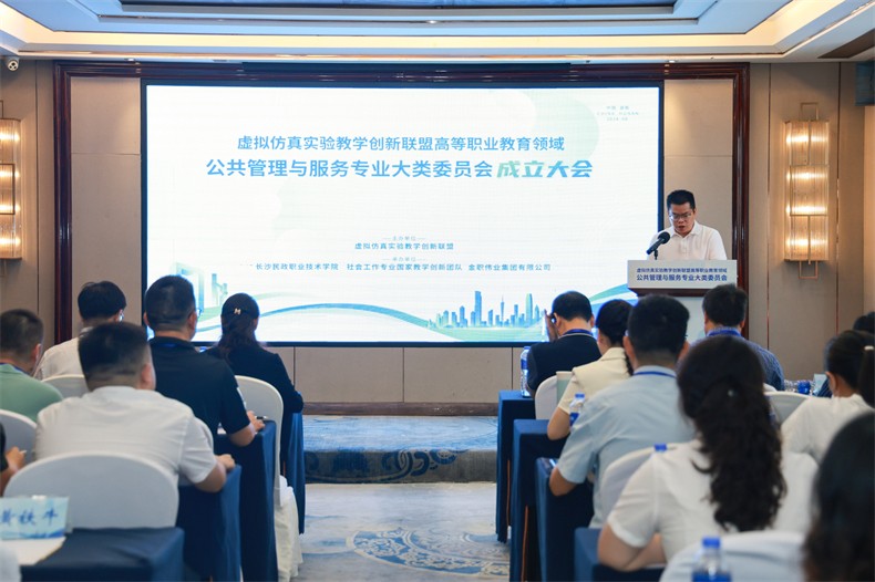 8月29日,由虛擬仿真實驗教學創新聯盟主辦,長沙民政職業技術學院、社會工作專業國家教學創新團隊、金職偉業集團有限公司承辦的虛擬仿真實驗教學創新聯盟高等職業教育領域公共管理與服務專業大類委員會成立大會在湖南長沙召開。來自全國各職業院校、企業的30余位領導、專家出席會議。