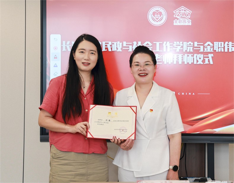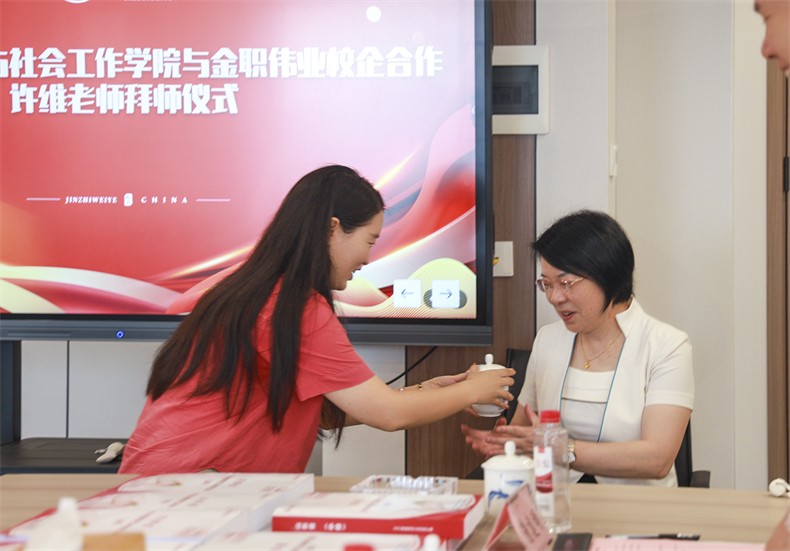 9月20日,金職偉業舉行教研中心副總監聘任暨拜師儀式。長沙民政職業技術學院許維副教授將作為金職偉業教研中心副總監,在我司開展頂崗培訓。金職偉業總經理潘建明主持本次儀式。