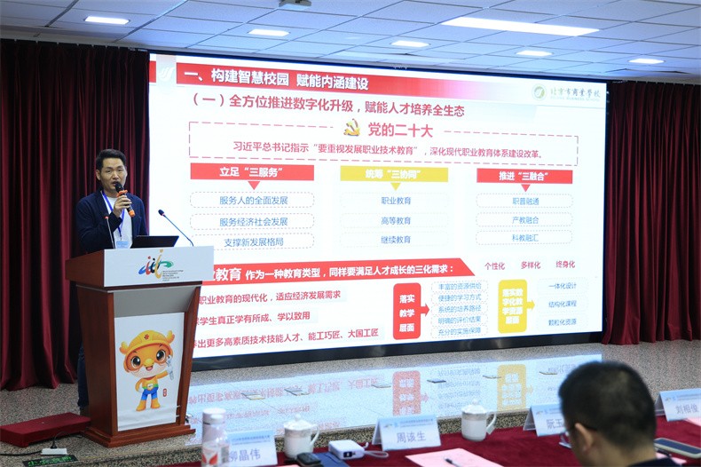教育部職業(yè)院校教育類專業(yè)教學(xué)指導(dǎo)委員會主任劉蘭明,北京市求實(shí)職業(yè)學(xué)校黨委書記鄒國祥、校長吳少君、金職偉業(yè)集團(tuán)總經(jīng)理潘建明等專家領(lǐng)導(dǎo)出席“四鏈融合產(chǎn)教同行 高水平專業(yè)支撐行業(yè)高質(zhì)量發(fā)展”分論壇。