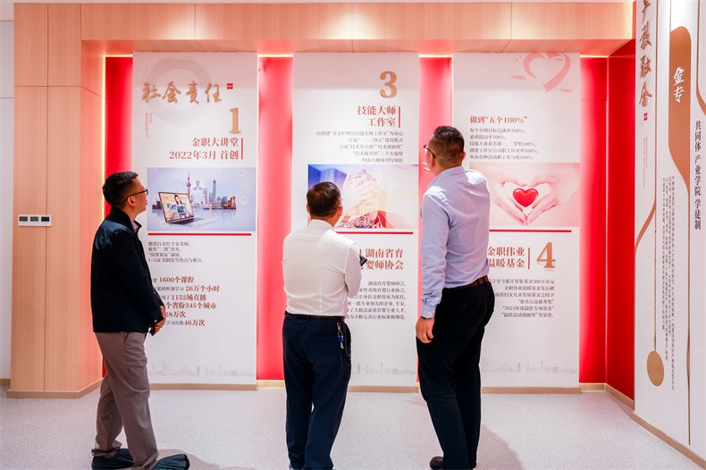 金職偉業集團總經理潘建明對屈校長一行的到來表示熱烈歡迎,并詳細介紹了集團創業歷程、團隊建設及取得的成就。他提到,“新雙高”建設為校企合作指明了方向,雙方應攜手并進,深化產教融合,以行業視角推動職業教育發展,同時利用院校優勢賦能行業。他表示,金職偉業集團期待在屈校長的指導下,不斷加深與湖南環境生物職業技術學院的校企合作,全力以赴,共贏發展。