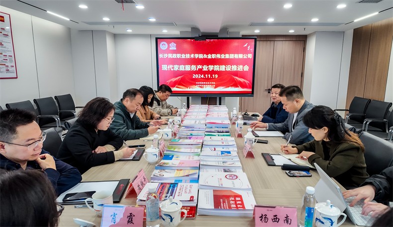 為探索現代家庭服務發展新模式,11月19日,長沙民政職院校企合作處趙勇處長、民社學院胡彬院長一行蒞臨金職偉業調研指導,金職偉業總經理潘建明博士、產業學院院長劉瀟等熱情接待,雙方就推進現代家庭服務產業學院建設展開討論。