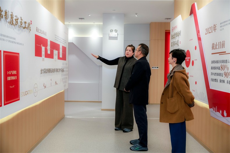 隨后,調研組一行深入金職偉業現代家庭服務產教融合實踐中心賽項情景化模擬實訓基地、智慧教室,巾幗家政服務進社區門店等地參觀,了解金職偉業在技術研發、實習實訓、技能人才培養就業、鄉村振興、家政服務運營發展等方面所做的不懈努力與輝煌成就。