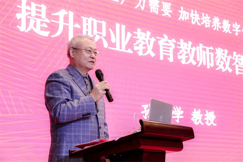 年會現場,中國職業技術教育學會副會長、中華職業教育社常務理事孫善學,發表題為《提升職業教育教師數智素養》的主題報告。他詳細闡述了職業教育教師數智素養提升的背景、重要性及相關概念,并指明了提升路徑。他的報告讓在場的教育工作者深刻認識到,在數字化時代,新業態、新職業、新崗位的不斷涌現對職業院校培養數字人才提出了迫切要求。提升教師的數字化和智能化素養,已成為職業教育教師隊伍建設改革的首要任務。