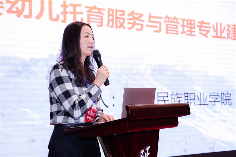 為積極探討“兒童服務”“嬰幼兒照護服務”工作新思路、發展新模式,論壇特邀請來自全國各地職業院校、行業、企業的多方專家進行主題分享。湖南民族職業學院黨委委員、學前教育學院院長曹三妹以《強“技”立身 互“融”共生—嬰幼兒托育服務與管理專業建設探索與實踐》為題,分享了學校嬰托專業對接產業需求,以技能競賽為抓手,實現產教融合發展的實踐經驗。長沙民政職業技術學院嬰幼兒托育服務與管理專業帶頭人、教授黃鐵牛現場作《依托高質量產教融合平臺 助力高質量人才培養》主題分享,他從院校角度,分享了現代職業教育體系建設改革背景下院校人才培養新范式。