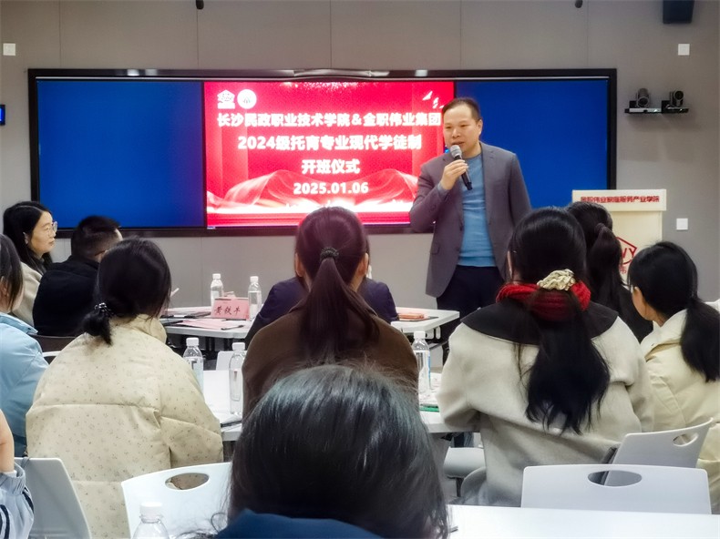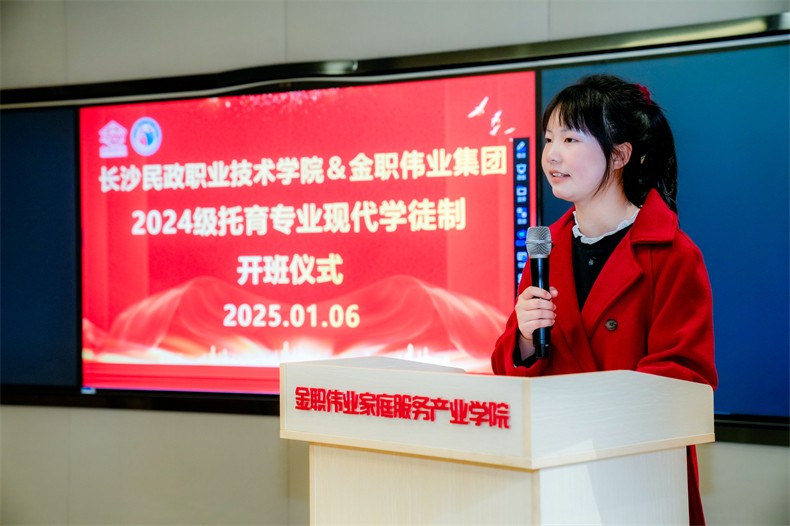 為助力技能人才培養與職業崗位需求相契合,2025年1月6日,長沙民政職業技術學院2024級嬰幼兒托育服務與管理專業現代學徒制在長沙市雨花區托育綜合服務中心正式開班,43名學子赴金職偉業集團開展為期5天的專業見習。