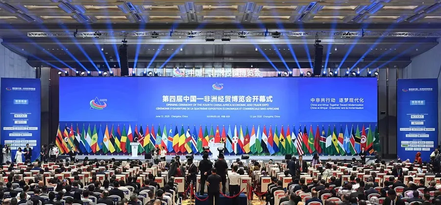 6月12日,第四屆中國-非洲經貿博覽會在湖南長沙盛大開幕。本屆博覽會以“中非共行動 逐夢現代化”為主題,會期4天。剛果共和國、肯尼亞、納米比亞、南非、尼日利亞擔任主賓國,湖北省、重慶市擔任主賓省(市)。非洲國家及國際組織代表,中國相關部委、省區市、央企、金融機構負責人等出席了開幕式。