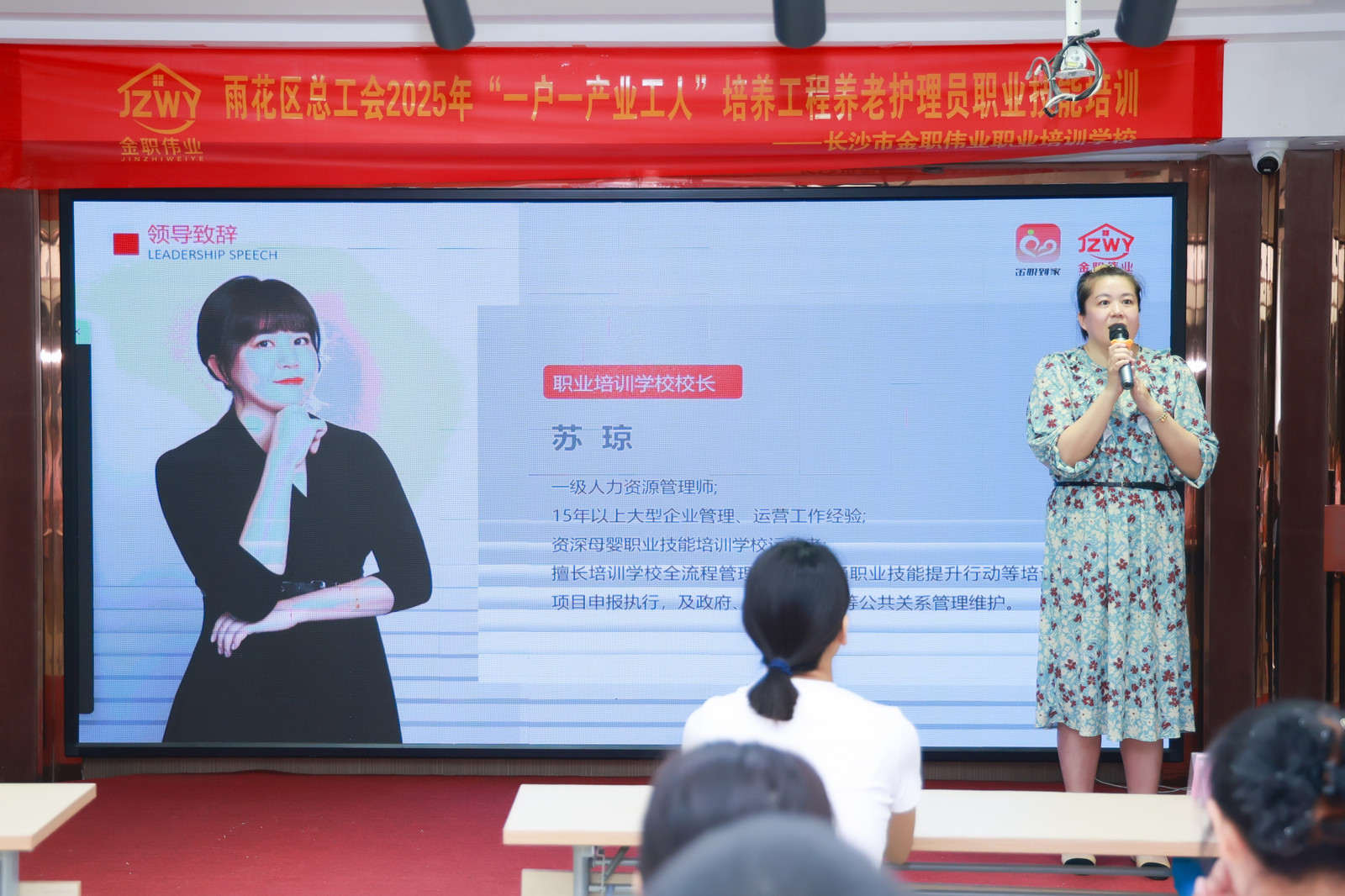 2025年6月16日,金職偉業(yè)與雨花區(qū)總工會(huì)攜手并肩,共同見(jiàn)證了“一戶一產(chǎn)業(yè)工人”養(yǎng)老護(hù)理員職業(yè)技能培訓(xùn)開班典禮的盛大啟幕。長(zhǎng)沙市金職偉業(yè)職業(yè)培訓(xùn)學(xué)校校長(zhǎng)蘇瓊親臨現(xiàn)場(chǎng),與來(lái)自“一戶一產(chǎn)業(yè)工人”培養(yǎng)工程的養(yǎng)老護(hù)理員班學(xué)員們共同開啟了匠心傳承的新篇章。