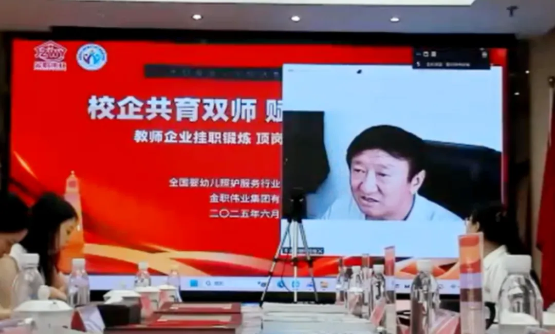 6月30日上午,由全國嬰幼兒照護服務產教融合共同體與金職偉業集團聯合主辦的“教師企業掛職鍛煉、頂崗實踐成果匯報會暨結業儀式”隆重舉行。本次活動以“校企共育雙師 賦能五金建設”為主題,采用線上線下結合方式進行,標志著來自內蒙古、貴州、廣西等地院校的多位骨干教師圓滿完成在金職偉業的實踐鍛煉,為深化產教融合、鍛造“雙師型”教師隊伍注入新動能。