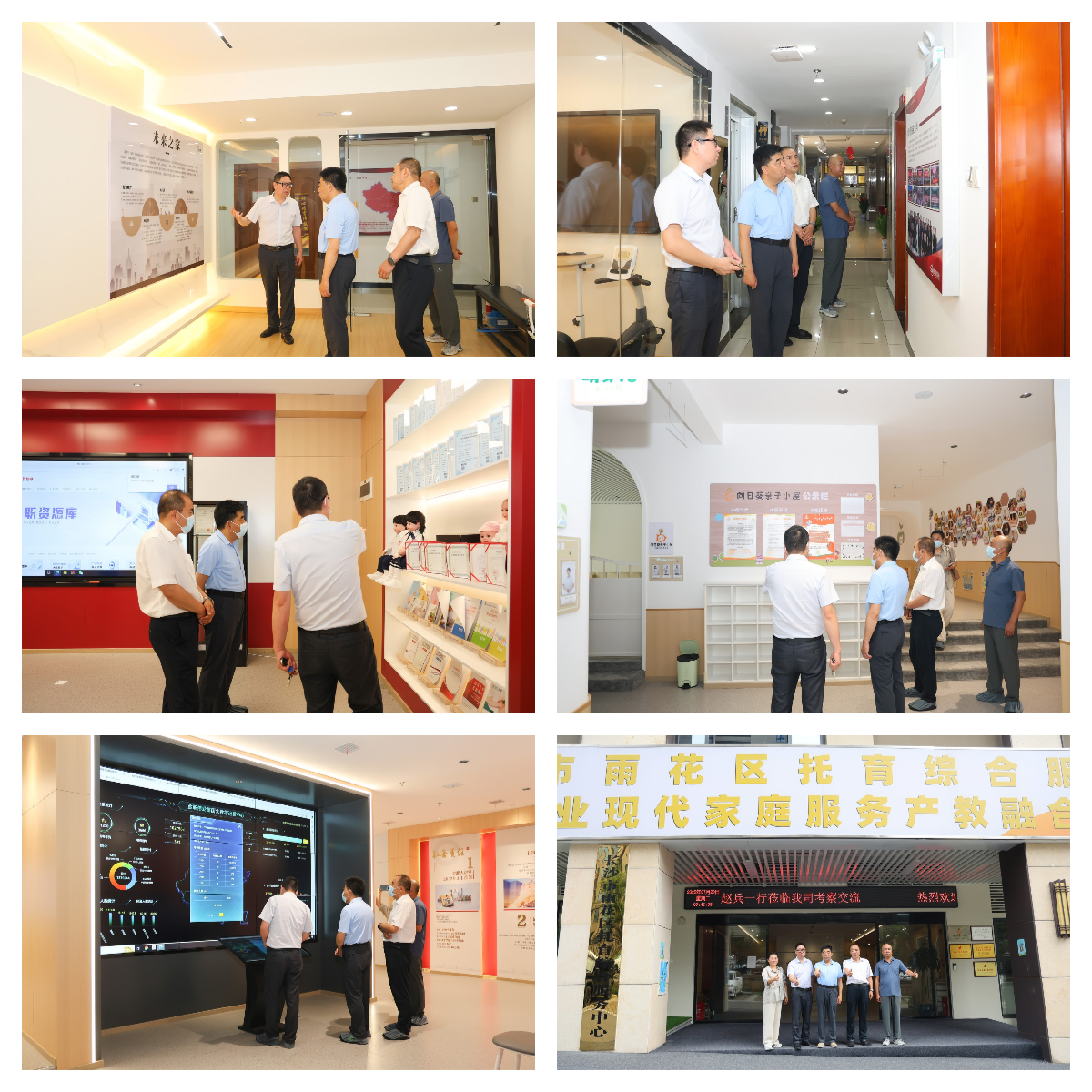 趙兵一行先后參觀了金職偉業現代家庭服務產教融合實踐中心、長沙市雨花區托育綜合服務中心(金嬰萌芽普惠托育園)、全國嬰幼兒照護服務產教融合共同體及集團運營中心。