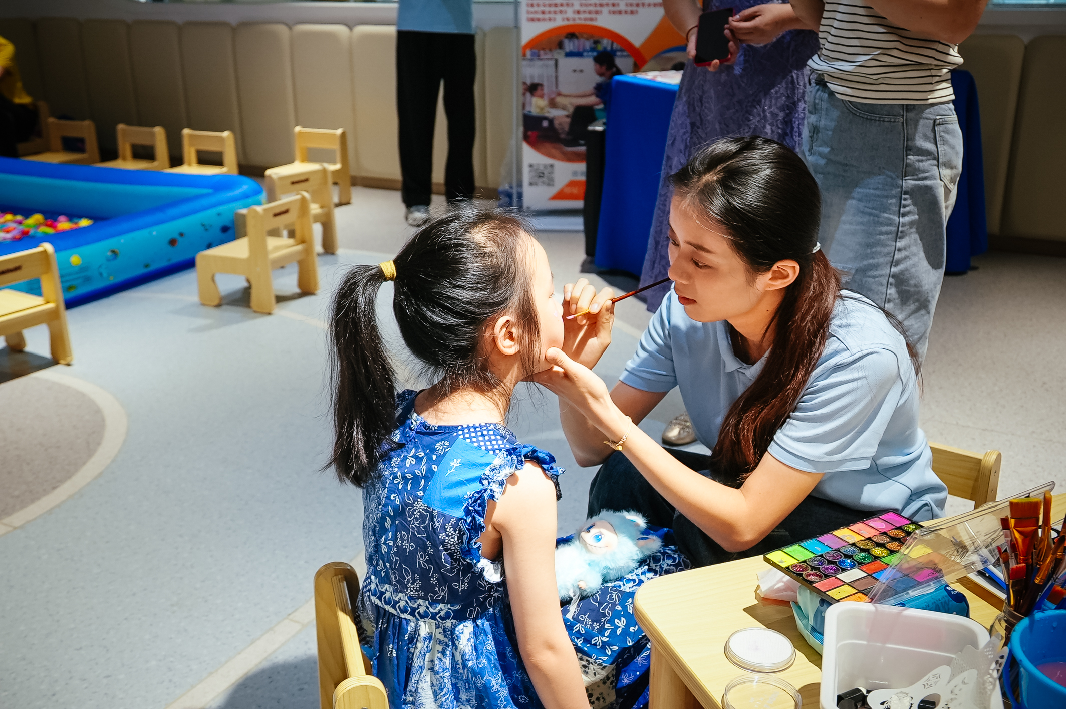 活動(dòng)現(xiàn)場按兒童早期發(fā)展規(guī)律設(shè)置四大功能區(qū),讓科學(xué)育兒理念融入體驗(yàn)細(xì)節(jié):咨詢區(qū)邀請專業(yè)醫(yī)療機(jī)構(gòu)專家團(tuán)隊(duì),提供嬰幼兒營養(yǎng)膳食、科學(xué)照護(hù)等一對一指導(dǎo),還通過情景模擬教學(xué)海姆立克急救法,提升家長應(yīng)急能力;游戲區(qū)以“萌寶闖關(guān)”“釣魚互動(dòng)”等趣味活動(dòng)鍛煉寶寶肢體協(xié)調(diào)與專注力,“歡動(dòng)早教課堂” 則通過互動(dòng)舞蹈培養(yǎng)孩子社交與想象能力;繪本閱讀區(qū)和表演區(qū)推出親子共讀、人偶故事會(huì),將傳統(tǒng)閱讀升級為 “視、聽、觸”多感官互動(dòng),激發(fā)孩子探索欲。