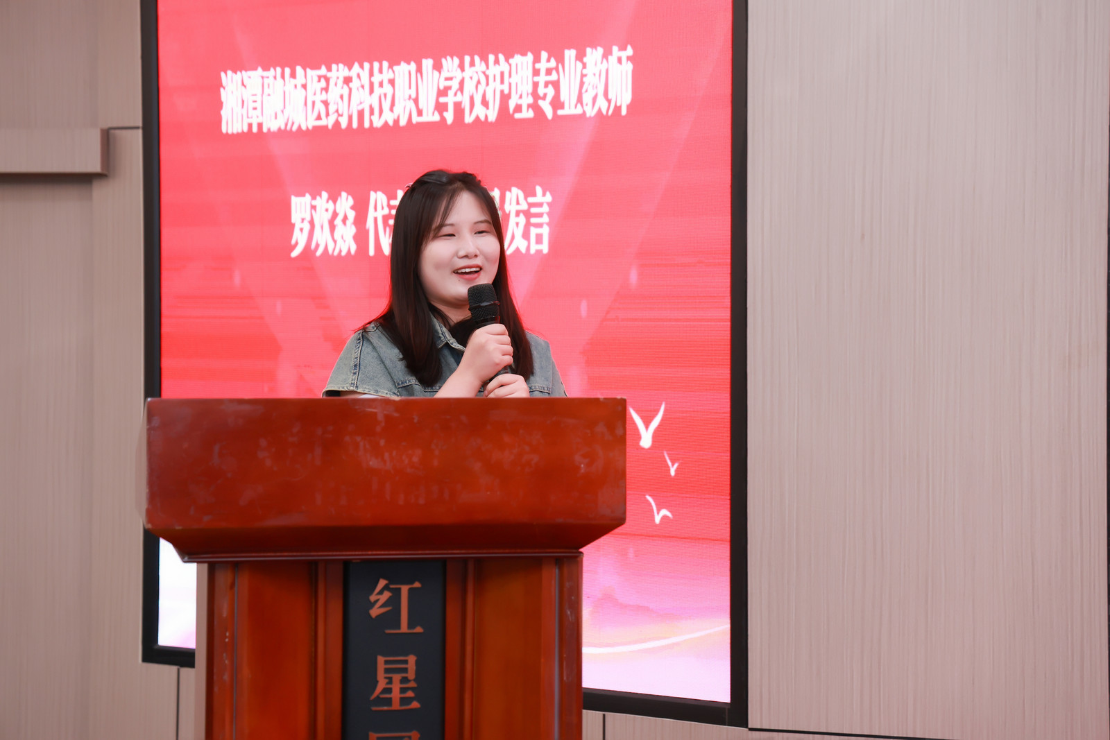 湘潭融城醫藥科技職業學校護理專業教師羅歡焱作為優秀代表發言,她表示,此次企業實踐讓她從課堂走進病房、從模擬走向真實,系統掌握了老年照護、急救技術、智能康養設備操作等臨床前沿技能,深刻體會到行業標準與教學內容的差距。她承諾,將把培訓中習得的技能標準與人文護理理念融入日常教學,為培養“下得去、留得住、用得上”的高素質護理人才貢獻力量。
