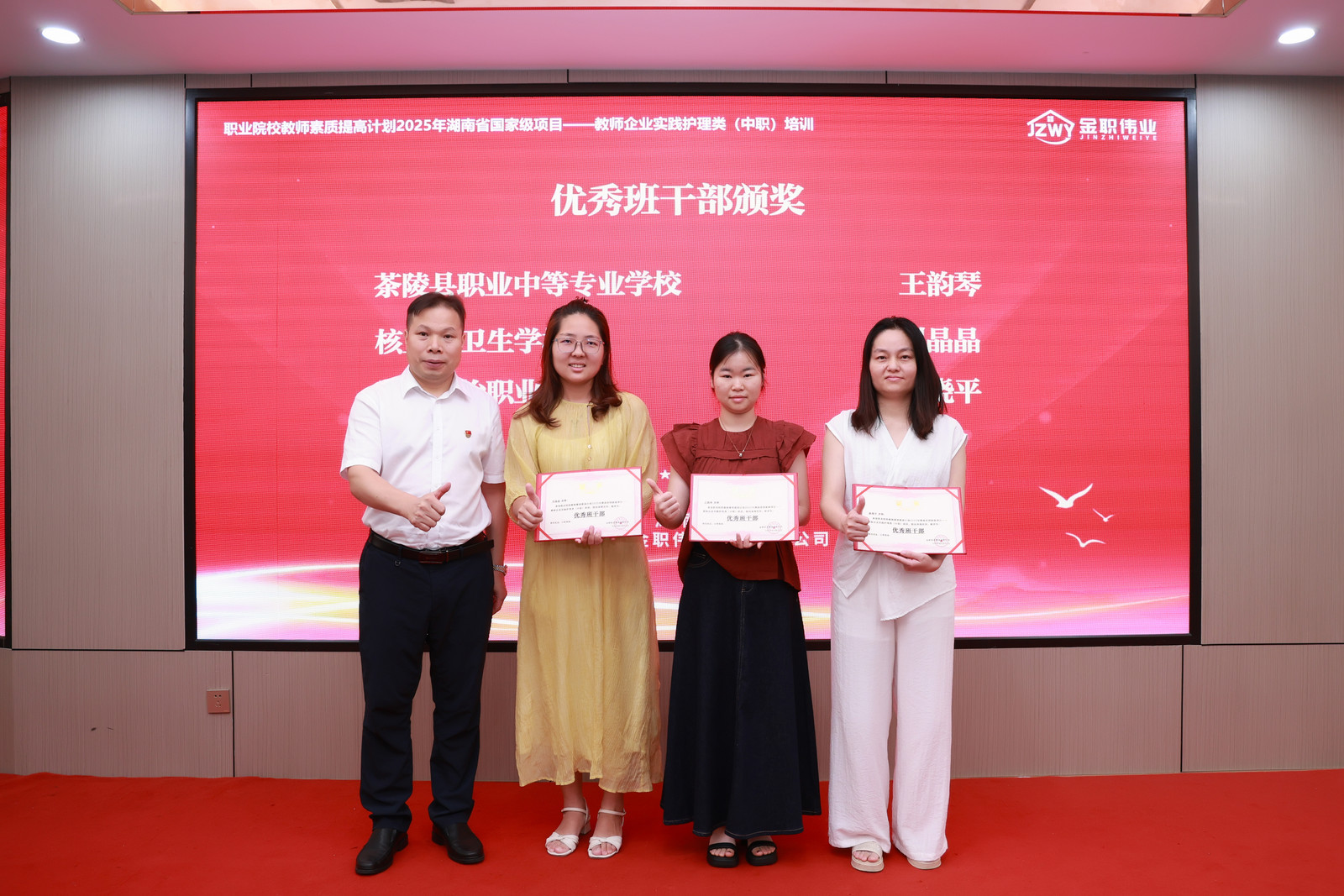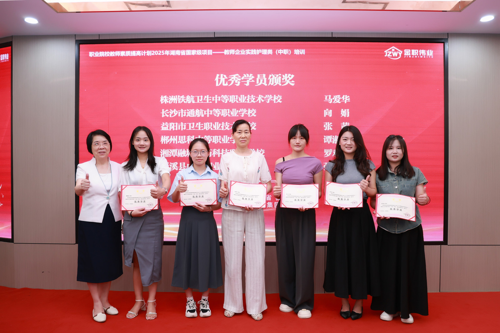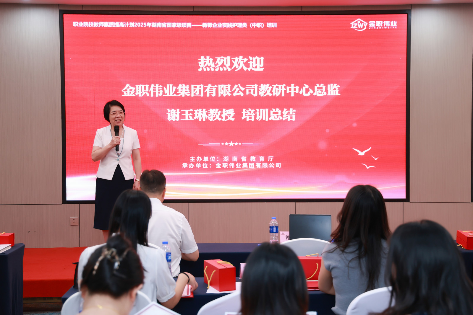 8月12日,職業院校教師素質提高計劃2025年湖南省國家級項目——教師企業實踐護理類(中職)培訓結業典禮在長沙順利舉行,全國民政職業教育教學指導委員會委員、金職偉業集團有限公司總經理潘建明博士,金職偉業集團有限公司教研中心總監謝玉琳教授出席典禮,與25位省內中職院校護理專業課青年骨干教師共同見證這一重要時刻。
