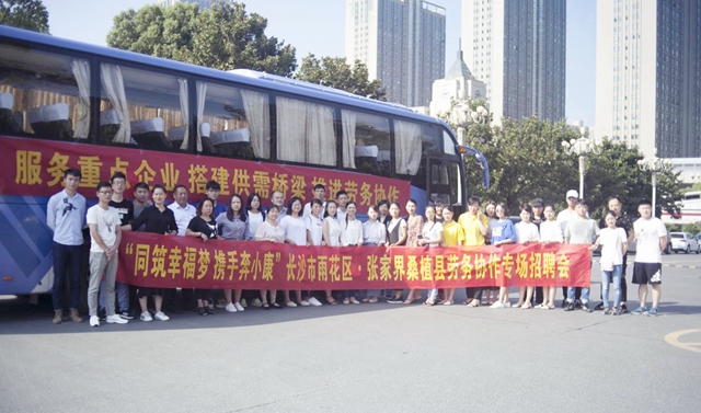 9月19日,在雨花區(qū)人社局的組織下,金職偉業(yè)與比亞迪、藍(lán)思科技、偉創(chuàng)力等知名企業(yè)一道,乘坐大巴奔赴桑植縣參加“同筑幸福夢(mèng) 攜手奔小康”勞務(wù)協(xié)作專(zhuān)場(chǎng)招聘會(huì)。