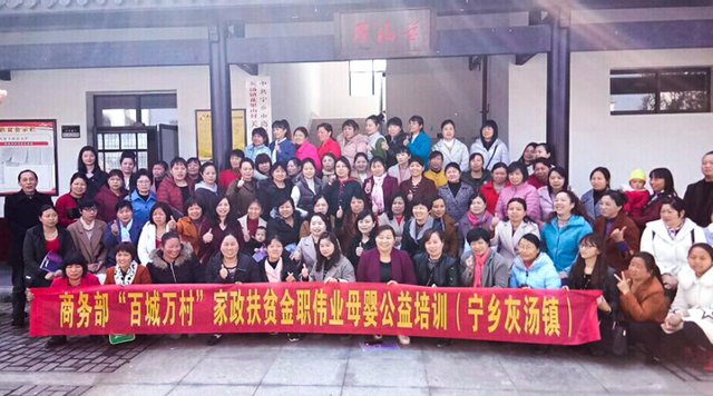 3月12日,寧鄉市灰湯鎮花果山村、新風村精準扶貧母嬰公益課隆重開班。本次培訓是在湖南省家庭服務業協會支持下的公益扶貧項目,由長沙金職偉業職業培訓學校派遣金牌教師進行授課。八十多名當地女性參與學習,其中建檔立卡貧困戶占一半以上,通過學習考核以后,學員可以獲得育嬰師職業資格證,取得月嫂上崗資格。
