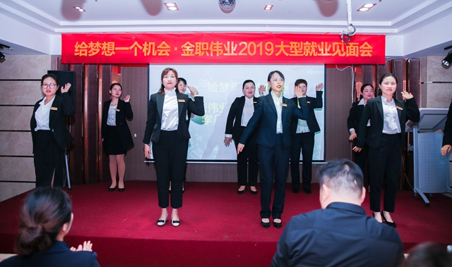 上午9時,在金職偉業學校職業規劃師團隊表演的《抓錢舞》帶來的熱烈氛圍中,此次就業見面會拉開序幕。