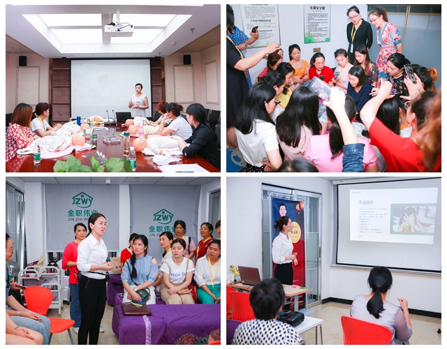 除去行業動態外,為助力從業人員技能提升,金職偉業特開設金牌講師課堂,分催乳、小兒推拿、產后康復、母嬰護理四大課堂,為與會人員奉上專業知識與實操手法分享。每位講師都人氣爆棚,在現場大家紛紛表示受益匪淺,不虛此行。