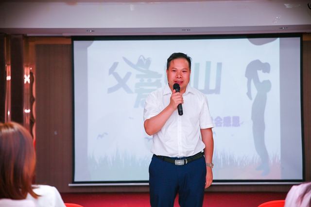 在一陣祝福結束后,金職偉業總裁也為大家分享了他的父親。他表示如今的成功離不開父親的嚴厲教導,是父親督促他學習,教他如何成為一名正直的人,也因此他可以走出大山來到長沙讀書,成為一名老師甚至擁有一份成功的事業。因此他希望學員們能夠常懷感恩的心,感恩父母的養育之恩,多多孝敬父母。接著已為人父的他也分享了如何成為一名好父親,他說因為工作原因可能陪伴孩子的時間很少,但他會堅持送孩子上學,無論前一天有多累,他會利用這十五分鐘的時間與孩子交流溝通,孩子感受到了愛,自然也不會吝嗇表達,在生活中聽到最多的話就是“爸爸我愛你。”最后,他為所有學員們的父親送上祝福,希望他們都能身體健康,也希望所有的學員能夠事業有成。