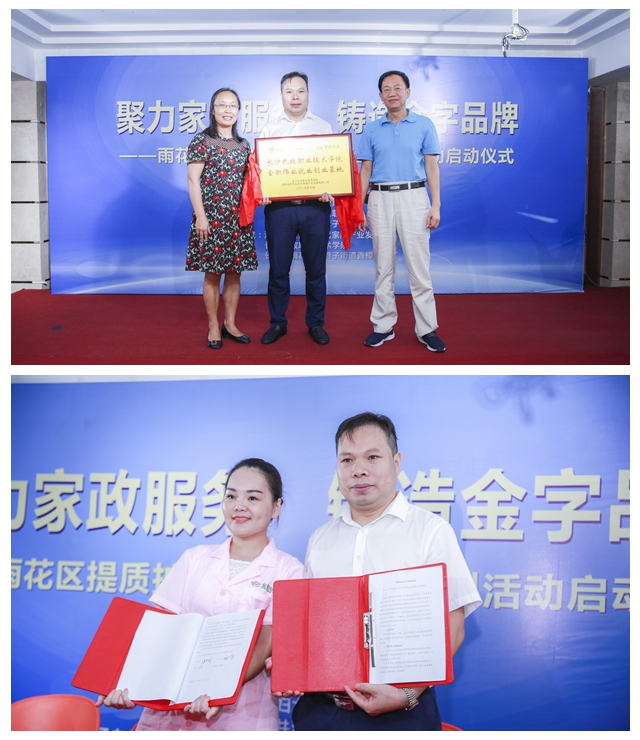 作為此次啟動(dòng)儀式重要一環(huán),長沙市雨花區(qū)人力資源和社會(huì)保障局、長沙市雨花區(qū)民政局、長沙市雨花區(qū)井灣子街道辦事處、長沙民政職業(yè)技術(shù)學(xué)院金職偉業(yè)就業(yè)創(chuàng)業(yè)基地、湖南省育嬰師協(xié)會(huì)共同簽署《促進(jìn)家政服務(wù)業(yè)提質(zhì)擴(kuò)容 打造雨花家政服務(wù)金字品牌——人才戰(zhàn)略合作協(xié)議》,明確系列主題活動(dòng)中各方合作內(nèi)容,闡明了各單位將合力推進(jìn)活動(dòng)順利開展,深化就業(yè)扶貧勞務(wù)協(xié)作,促進(jìn)雨花家政提質(zhì)擴(kuò)容,延伸社區(qū)服務(wù)窗口,打造雨花金字品牌的決心。