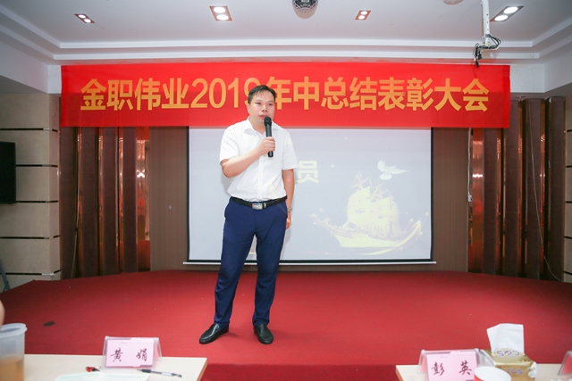 時光悄然,2019年已過半程。回望上半年,我們風雨兼程,奮楫逐浪;展望下半年,我們攜手共進,再攀高峰。8月16日下午,金職偉業集團2019年中總結表彰大會圓滿舉行。全體金職偉業人齊聚一堂,吹響下半年征程開啟的號角。