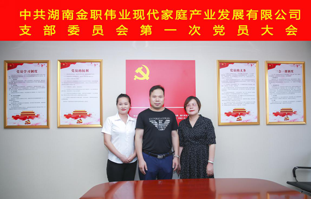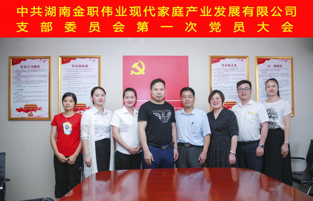 2019年9月11日,中共湖南金職偉業(yè)現(xiàn)代家庭產(chǎn)業(yè)發(fā)展有限公司支部委員會第一次黨員大會暨黨支部成立大會在長沙市隆重召開。湖南省工商聯(lián)商會協(xié)會黨委委員、中共湖南省非公企業(yè)投資商會總支委員會書記李國輝、湖南省非公企業(yè)投資商會常務副會長、湖南金職偉業(yè)現(xiàn)代家庭產(chǎn)業(yè)發(fā)展有限公司董事長彭英、湖南金職偉業(yè)現(xiàn)代家庭產(chǎn)業(yè)發(fā)展有限公司總經(jīng)理潘建明等領導,公司全體黨員、預備黨員、入黨積極分子等參加了會議。