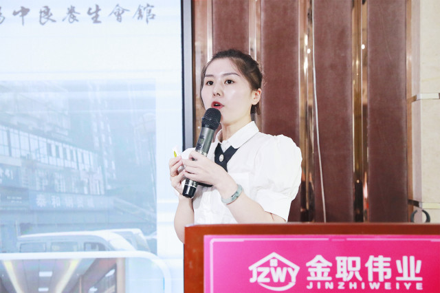 上午9時,活動正式開始。主持人首先介紹了蒞臨此次會議的各位嘉賓與領導,金職偉業董事長彭英、培訓學校校長楊珺安、全國市場運營總監周丹、技術研發主任陳萬方等出席了此次活動。隨后金職偉業招商、招生團隊帶來了精心準備的團隊展示,她們熱情洋溢的舞姿充分展現出專業團隊的無限風采。