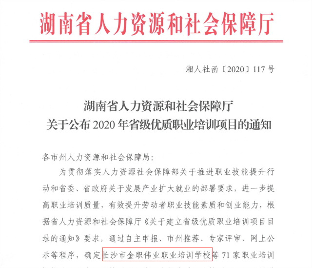 近日,湖南省人力資源和社會保障廳先后印發(fā)《關于公布2020年省級優(yōu)質職業(yè)培訓項目的通知》、《關于推薦省級職業(yè)技能培訓線上平臺機構的通知》,金職偉業(yè)育嬰員培訓、養(yǎng)老護理員培訓共同入選2020年湖南省優(yōu)質培訓項目,金職偉業(yè)平臺入選湖南省級線上平臺機構。