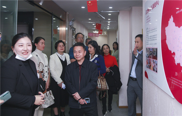 在董事長彭英、總裁潘建明等陪同下,調(diào)研組一行先后參觀了金職偉業(yè)運營總部、金職偉業(yè)職業(yè)培訓(xùn)學(xué)校、金嬰麗人直營門店,實地考察了金職偉業(yè)開展的各項業(yè)務(wù)工作。
