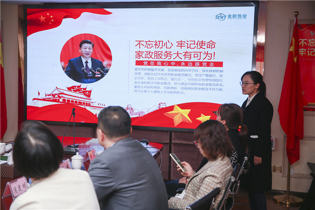 會議伊始,金職偉業(yè)董事長彭英發(fā)表講話。她首先對各位領(lǐng)導(dǎo)的蒞臨表示感謝及歡迎,并分享了兩點內(nèi)容。其一,黨的好政策,金職人在路上。在國家教育、人才、產(chǎn)業(yè)政策的大力支持下,金職偉業(yè)迎來了發(fā)展的春天,希望在今后能夠?qū)崿F(xiàn)學(xué)生好學(xué)、老師好教、企業(yè)好用的偉大目標(biāo)。其二,金職偉業(yè)的五大核心優(yōu)勢:教育情懷、人才培育方案、標(biāo)準(zhǔn)體系、課程體系、產(chǎn)教融合。在未來,金職偉業(yè)將繼續(xù)發(fā)揮好行業(yè)龍頭企業(yè)的示范引領(lǐng)作用,秉承“讓千萬婦幼老實現(xiàn)健康幸福生活”的企業(yè)使命,帶動更多家政企業(yè)規(guī)范發(fā)展、規(guī)模發(fā)展、質(zhì)量發(fā)展。