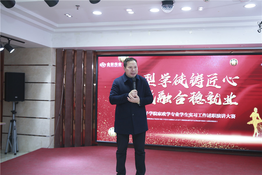 1月12日下午,“新型學徒鑄匠心,產(chǎn)教融合穩(wěn)就業(yè)”湖南女子學院家政學專業(yè)學生實習工作述職演講大賽在金職偉業(yè)創(chuàng)新創(chuàng)業(yè)孵化基地內(nèi)隆重舉行。來自湖南女子學院家政專業(yè)的全體實習生共同參加。