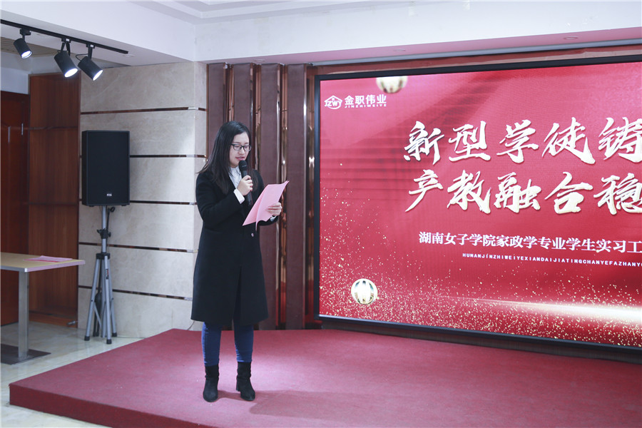 活動伊始,湖南金職偉業(yè)集團總經(jīng)理潘建明進行開場致辭。他首先對湖南女子學院全體家政專業(yè)優(yōu)秀學子在金職偉業(yè)實習期間的積極表現(xiàn)表示感謝,并希望她們能夠銘記在金職偉業(yè)的實習經(jīng)歷,也希望未來有更多的優(yōu)秀學子加入金職偉業(yè),攜手共同創(chuàng)造家政行業(yè)的美好明天。