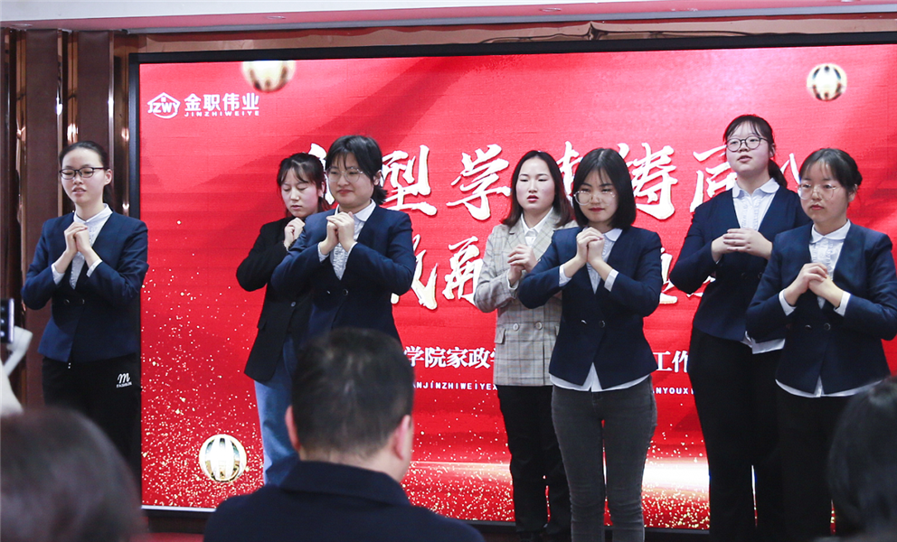 緊接著,湖南女子學院家政專業(yè)的全體實習生帶來了一支手語舞《聽我說謝謝你》,以此感謝金職偉業(yè)集團與湖南女子學院提供的寶貴實習機會以及帶教老師的悉心教導。