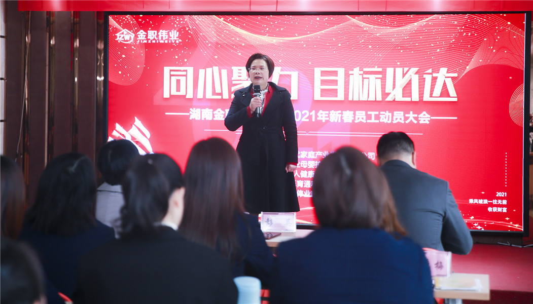 會上,金職偉業(yè)董事長彭英首先為全體金職人送上了新年祝福。她表示,2021年是金職偉業(yè)第二個“五年計劃”的第一年,她希望全體員工能夠緊跟公司的發(fā)展步伐,在新的一年,發(fā)揚牛的精神,扎實推動金職偉業(yè)的蓬勃發(fā)展。