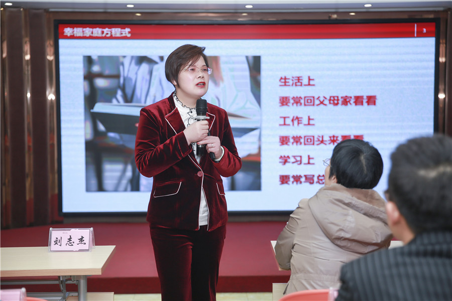活動伊始,湖南金職偉業集團董事長彭英率先為金職偉業全體員工及學校學員送上節日祝福,同時,作為金職偉業的大家長,彭英董事長根據自己生活點滴,以《幸福方程式》為主題,向大家分享了家庭幸福最重要的三點內容:其一,學會換位思考,尊重對方;其二,夫妻雙方應擁有共同的事業;其三,關愛兒女,與親人相伴成長。最后,她祝愿每一個人都能成為孝順的兒女,成為優秀的母親,擁有一個幸福的家庭。
