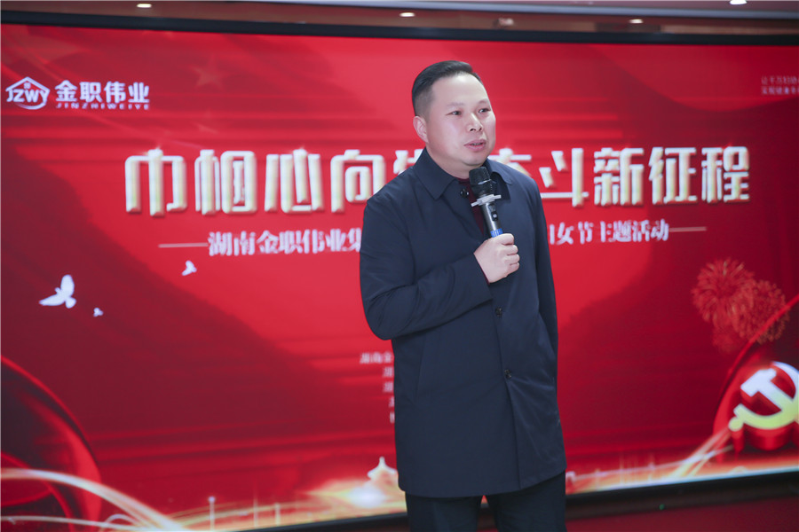 隨后,湖南金職偉業集團總經理潘建明為全體女性送上節日祝福,同時他提到,公司的發展離不開女性的奮斗,家庭的和睦離不開女性的維護,“祝愿所有女性身體健康,家庭幸福。”